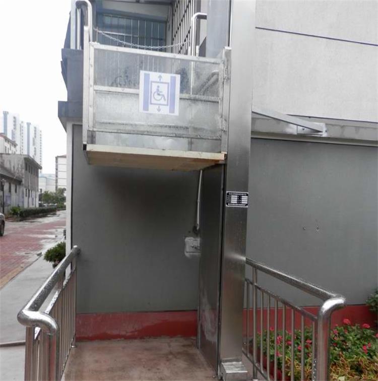 无障碍残疾人升降机,主要是由导轨和升降平台板组成的,类似一个简易的小电梯。导轨是镶嵌在通道出入口的墙壁上的,随着楼梯的坡度向下延伸,一直到地道内部。而升降平台在不使用时可以折叠靠着墙壁放置,这样不会占用通道出入口处的空间。乘坐轮椅的残疾人在使用时,轮椅四个轮子可以被固定在台板上,按动开关后就可以控制升降平台进入地下通道,安全方便。